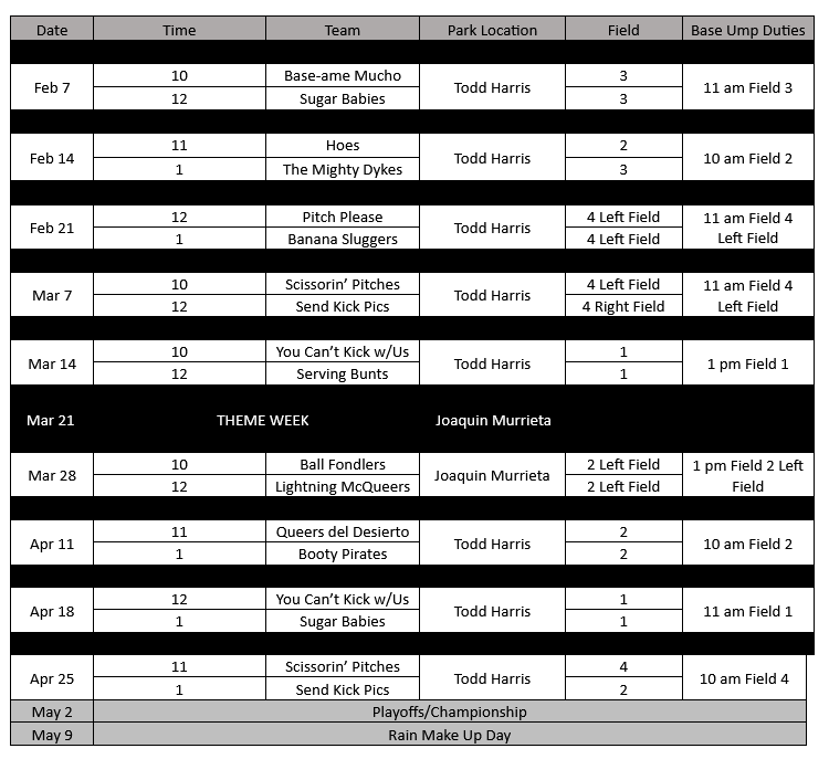 SEASON SCHEDULE