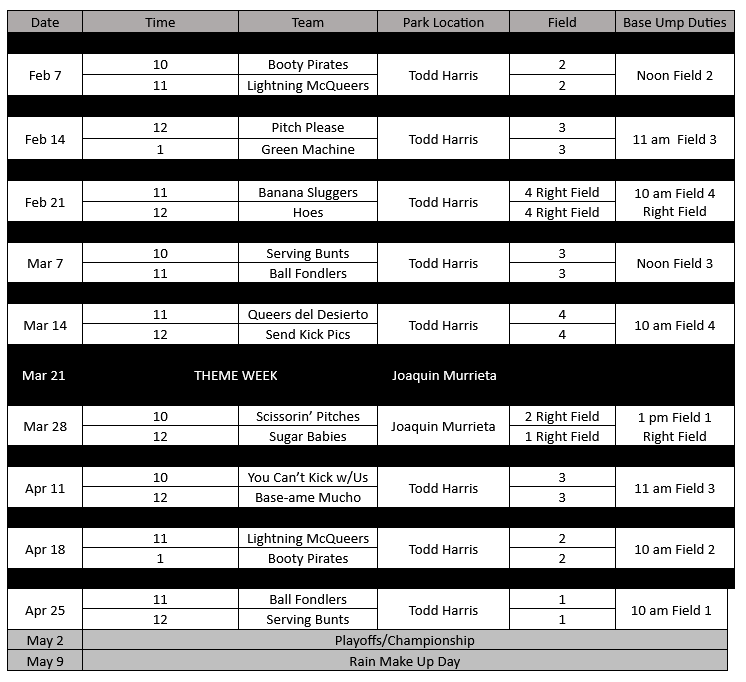 SEASON SCHEDULE